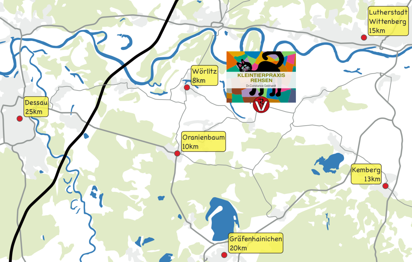 Unsere Praxis liegt verkehrsgünstig zwischen den Städten Wittenberg, Dessau und Wörlitz – direkt an der Hauptverbindungsachse - eingebettet in das Biosphärenreservat Mittelelbe, der Dübener Heide und der Oranienbaumer Heide.